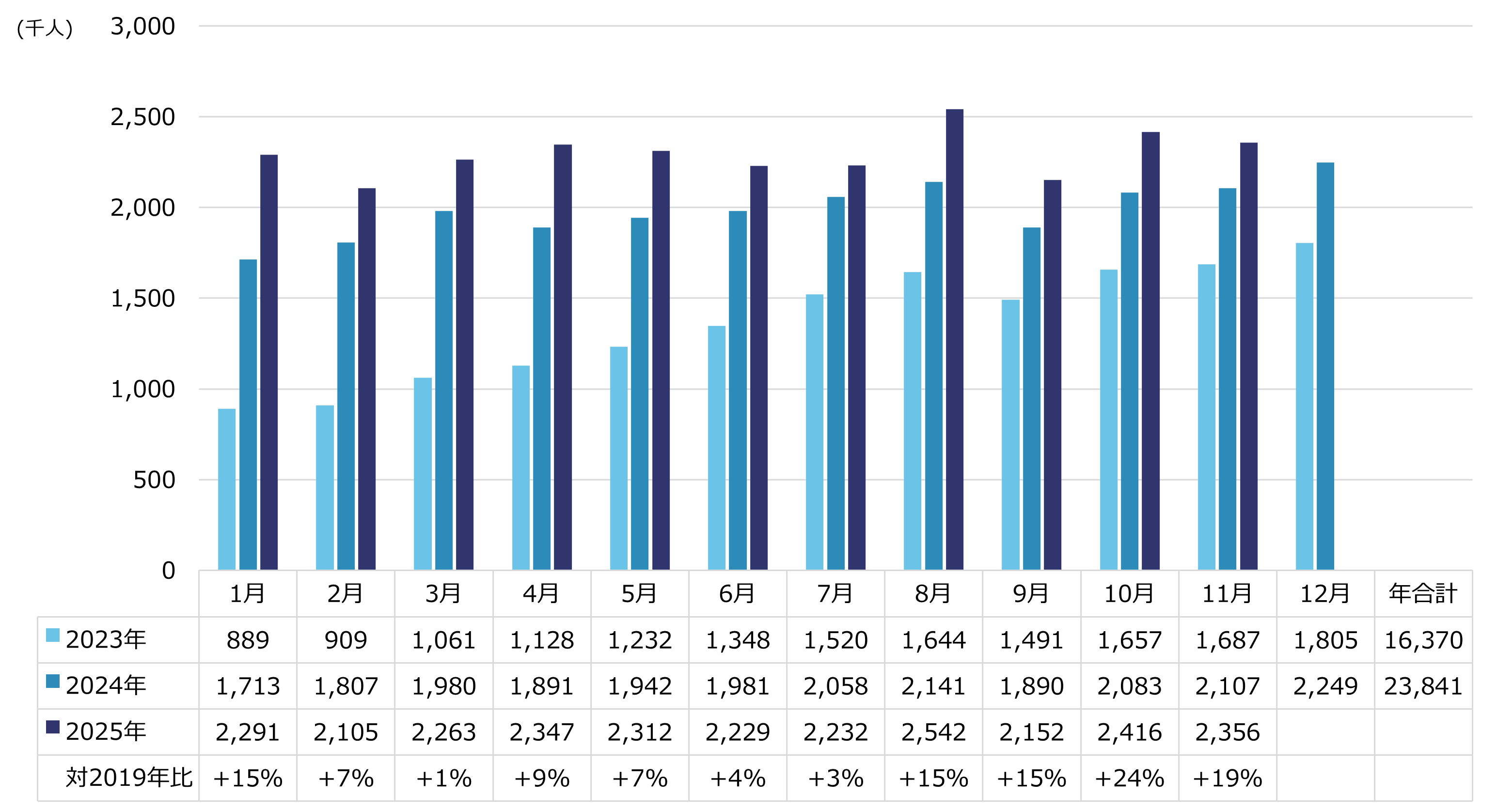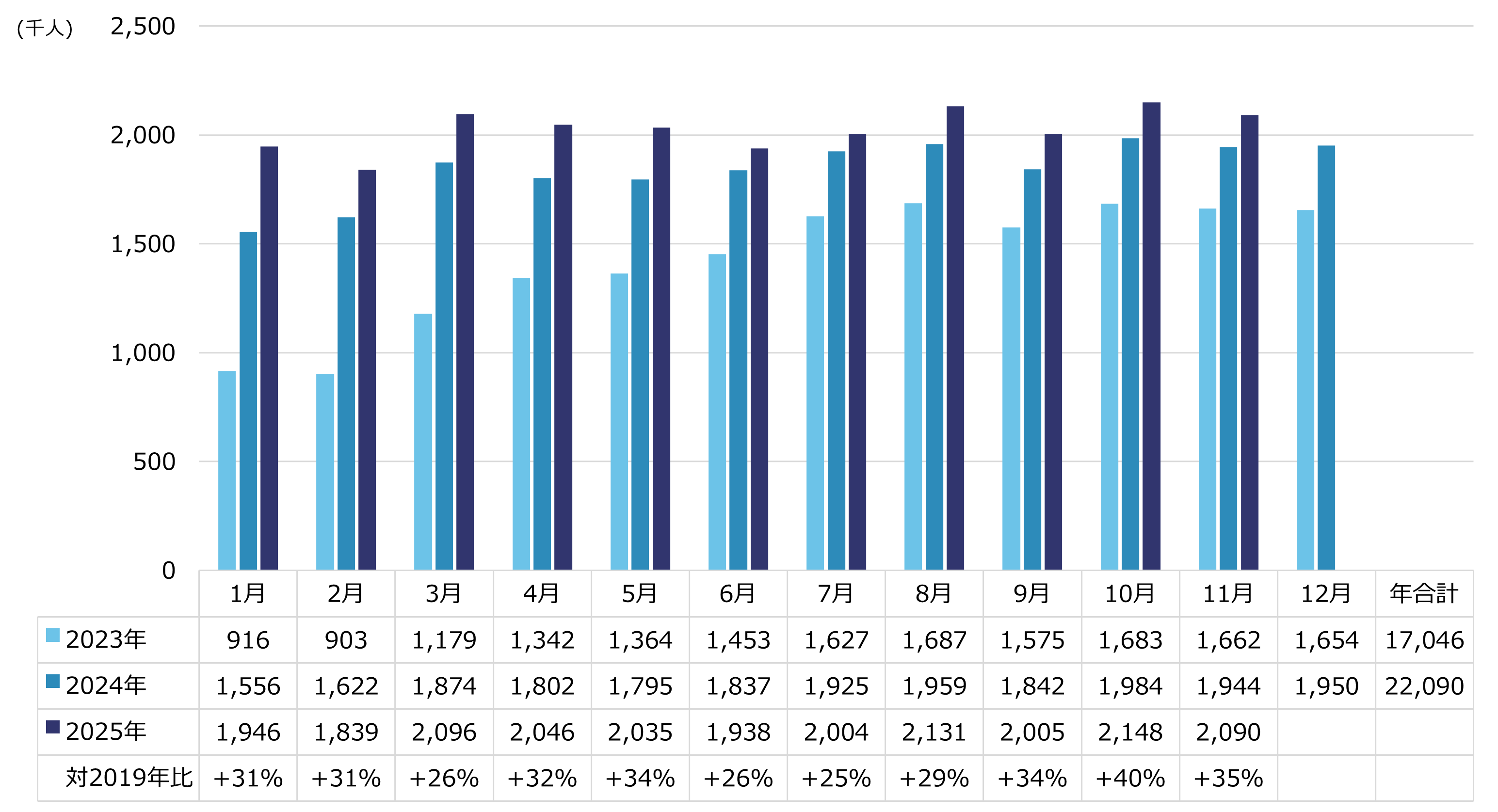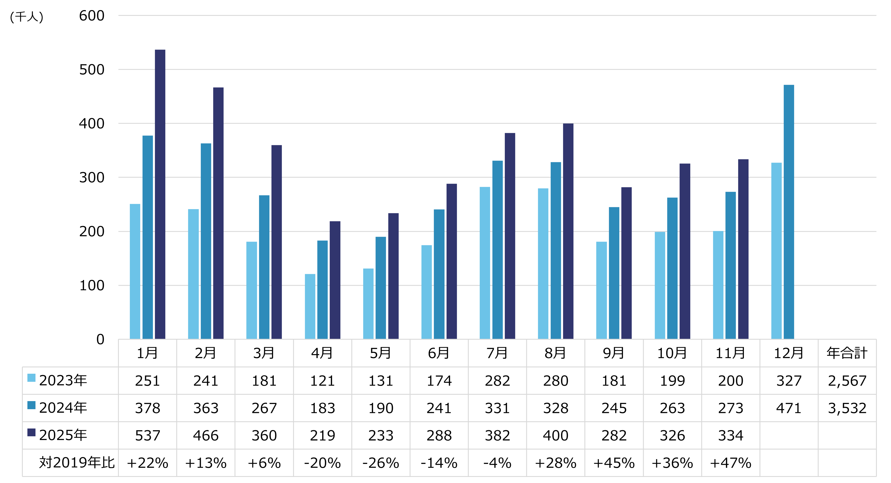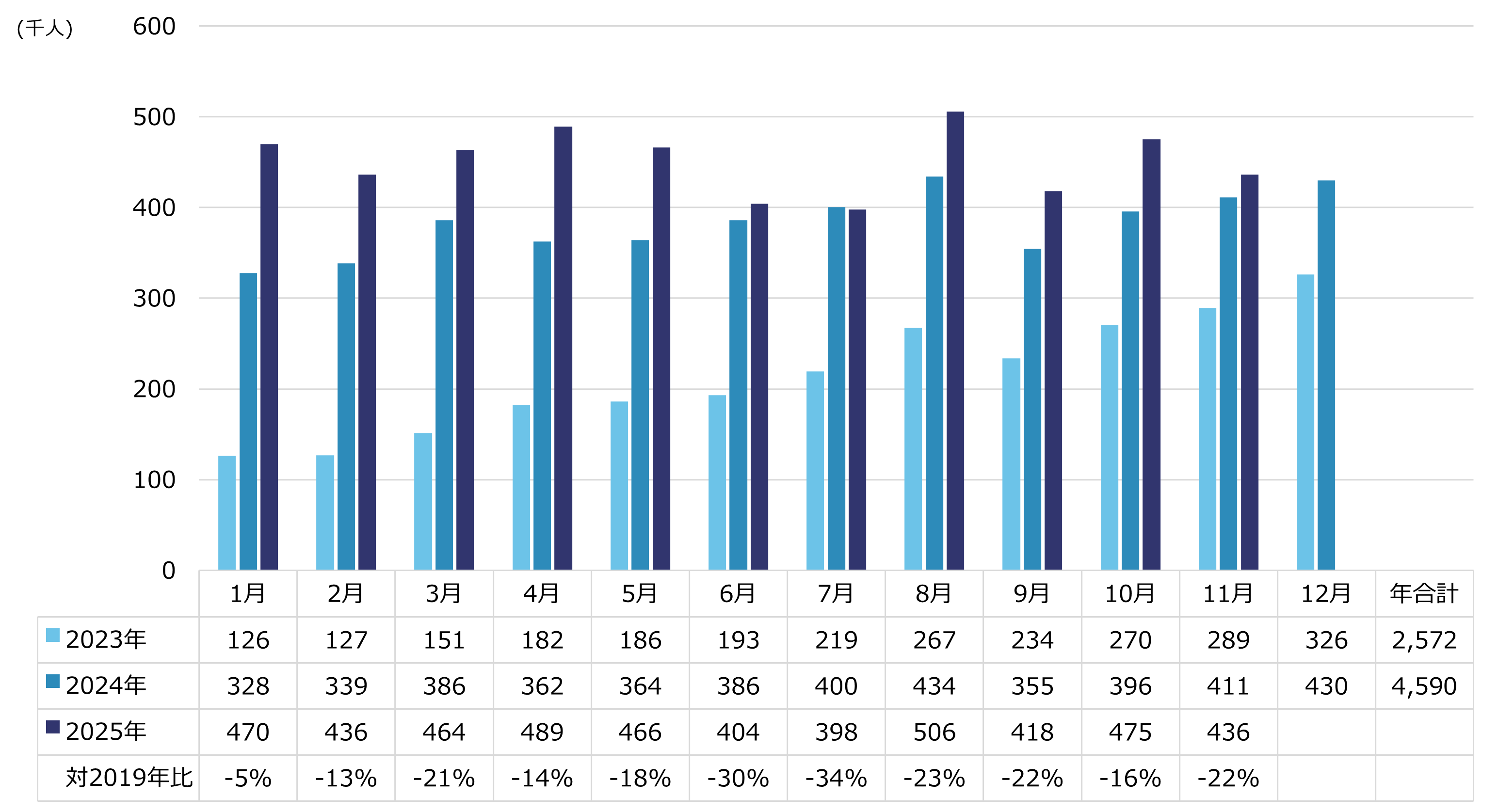 ※出典:2023年までは国土交通省「空港管理状況調書」、2024、2025年は大阪航空局「管内空港の利用概況集計表」